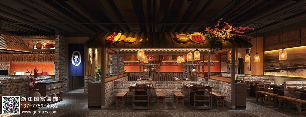 川式老火鍋店裝修設計案例效果圖