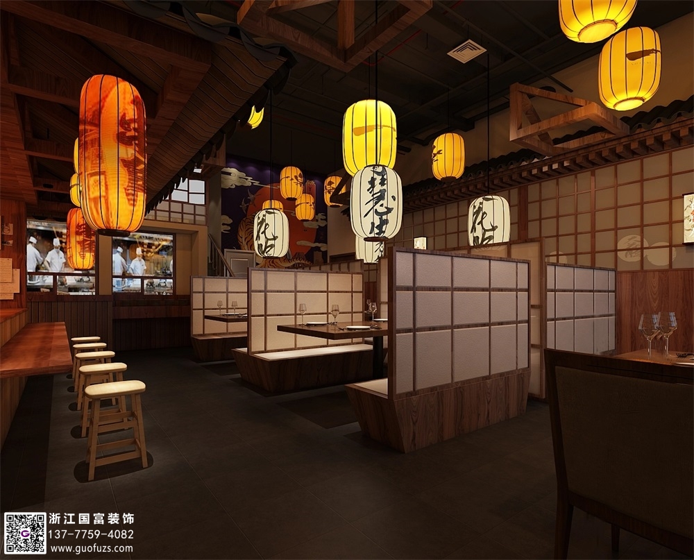 日式海鮮燒烤餐廳裝修設計案例效果圖
